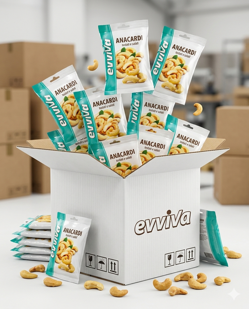 Anacardi Tostati e Salati Evviva - Snack Croccante (Multipack 12/24/36 pz)